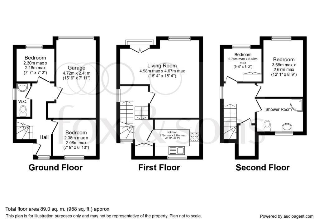 Second floor – Principle bedroom, Study / Bedroom, large shower room.